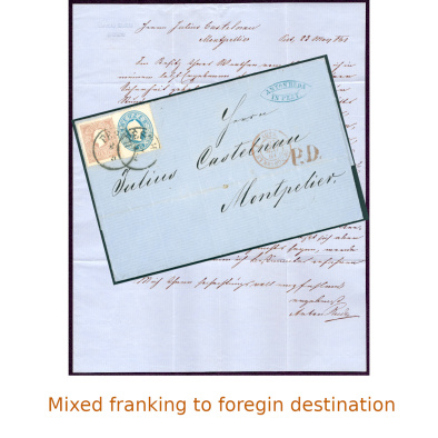 1858 / 1861 Austria / Hungarian area – mixed franking on a letter from Pest to France