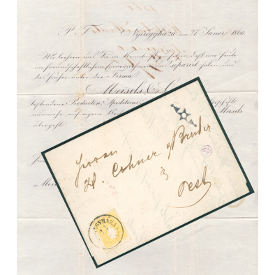 • 1858 / 1861 mixed franking with Banská Bystrica pharmacy pre-cancellation – Certificate Fercbenbauer
