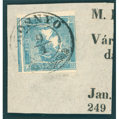 1851 Austria blue Mercury light blue type Ib on piece of a wrapper with ROSNYÓ postmark – Ferchenbauer 250 EUR