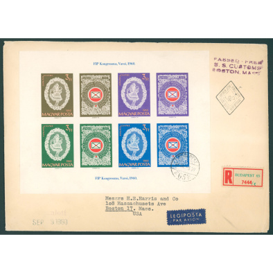 1960 FIP imperforated souvenir sheet on FDC envelope sent to the USA PHu: 50+ EUR