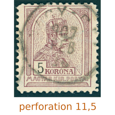 1900 Turul 5 Korona with 11,5 perforation and with nice wide size – one of the great rarities of Hungarian philately