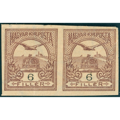 1900 Turul 6f imperforated pair in brown colour without gum, with B3 watermark position