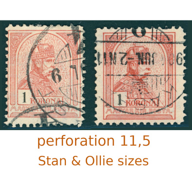 1900 Turul two 1 K value with 11,5 perforation – “Stan & Ollie” sizes PHu 40 EUR