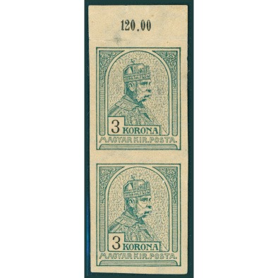 1900 Turul 3K imperforated mint ** pair with sheet margin