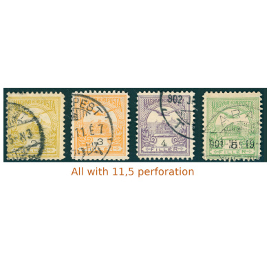 1900 Turul four values with 11,5 perforation PHu: 100 EUR