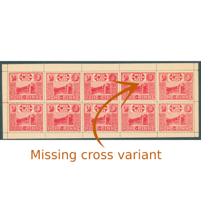1924 Hohen Rinne red sheet with the “sunshine on the left and missing cross on the house” subtype stamp in position 4.