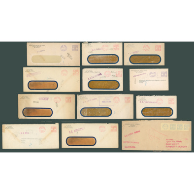 1936 ship’s mail stamp collection S.S. REX, S.S. AQUITANIA, BREMEN, ILE DE FRANCE etc. 12 pieces + meter stamps