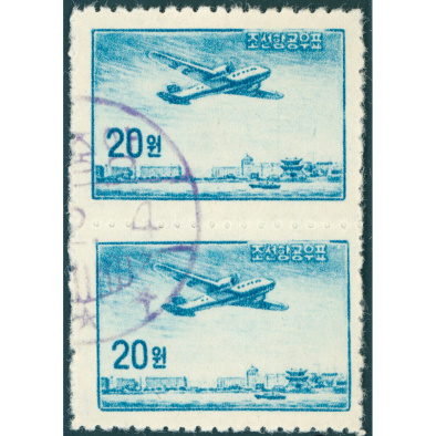 1958 North Korea – Airmail 20W pair – Lisunov Li-2
