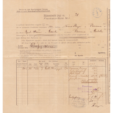 • 1894. Austria – document duty and postage free parcel card for a 13kg parcel worth 800.000(!) frt sent to Temeswar