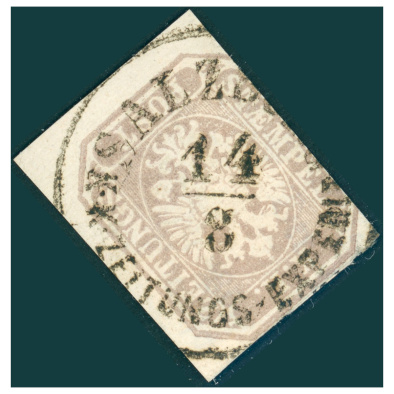 • 1863 Austria newspaper stamp with cut into the image on the right side, rare SALZBURG / K.K. ZEITUNGS EXPEDIT. postmark Mueller 85*4p