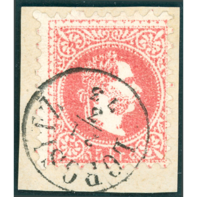 • 1864 5kr with spectacular missperforation + beautiful red PEST / RECOMANDIRT postmark with the rarer one letter M type – Gudlin 500p Mueller 8*12p