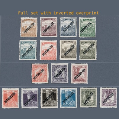• 1918 Hungary – Republic of Hungary the all known inverted overprinted stamps in mint hinged condition