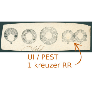 • 1853 okirati szignetta kivágás 1 Gulden 35 kr – U1 / PEST – a ritka 1 krajcáros szignettával PHu: RR / Szücs R