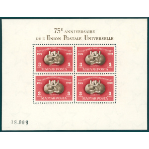 • 1950 UPU fogazott blokk postatiszta **, szép hibátlan töredezésmentes enyvezéssel, Phu 180.000 ft