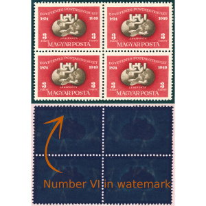 • 1950 UPU 3 Ft postatiszta ** négyestömb számvízjellel Aa számvízjel állással Phu 86.000 Ft