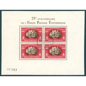 • 1950 UPU vágott pecsételt blokk, számvízjellel Aa állás, Phu 300.000 ft
