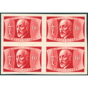 • 1948 EÖTVÖS LORÁND postatiszta ** vágott négyestömb, a legnagyobb ismert vágott összefüggés PHu: 160.000 ft