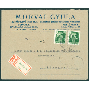 1945 április 23. – szükségtarifás ajánlott boríték Pestújhelyről Visegrádra küldve