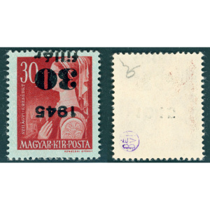 • 1945 . Kisegítő bélyeg 30f/30f postatiszta ** fordított felülnyomattal BÉVI vizsgálójellel Mi. 787. PHu 829 / 30. 000 Ft