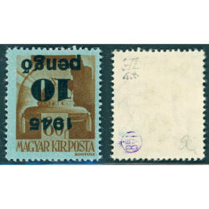 • 1945 . Kisegítő bélyeg 10P / 80f postatiszta ** fordított felülnyomattal BÉVI vizsgálójellel Mi. 815. PHu 857. / 25. 000 Ft
