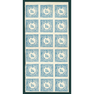 1898 hírlapilleték bélyeg postatiszta 18-as (!) tömb B3 vízjel állás – rendkívül ritka ilyen nagy összefüggésben!
