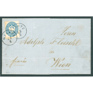 • 1867 június (!) konzulátusi posta Romániában – a magyar időszakban ritkán látható provizórikus 1864. évi soldi felhasználás Ausztriába küldött borítékon