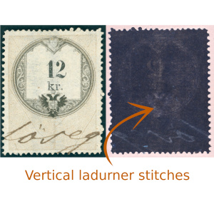 • 1858 okmánybélyeg 12 kr függőleges varratvízjellel