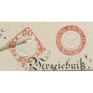 1817 Ausztria – hivatalos okirat piros (!) színű szignettákkal