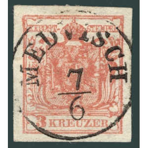 1850 Ausztria – 3kr I. típus – szép MEDVISCH lebélyegzés + kis lemezhibák