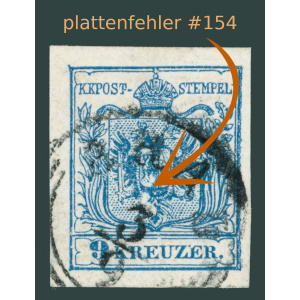 1850 Ausztria – 9 kr IIIa típus ARAD lebélyegzéssel + Ferchenbauer 154. lemezhiba / 50 EUR
