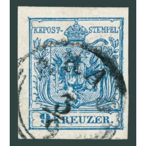 1850 Ausztria – 9 krajcar I. típus szép szegélyléc nyommal – luxus FIUME bélyegzéssel