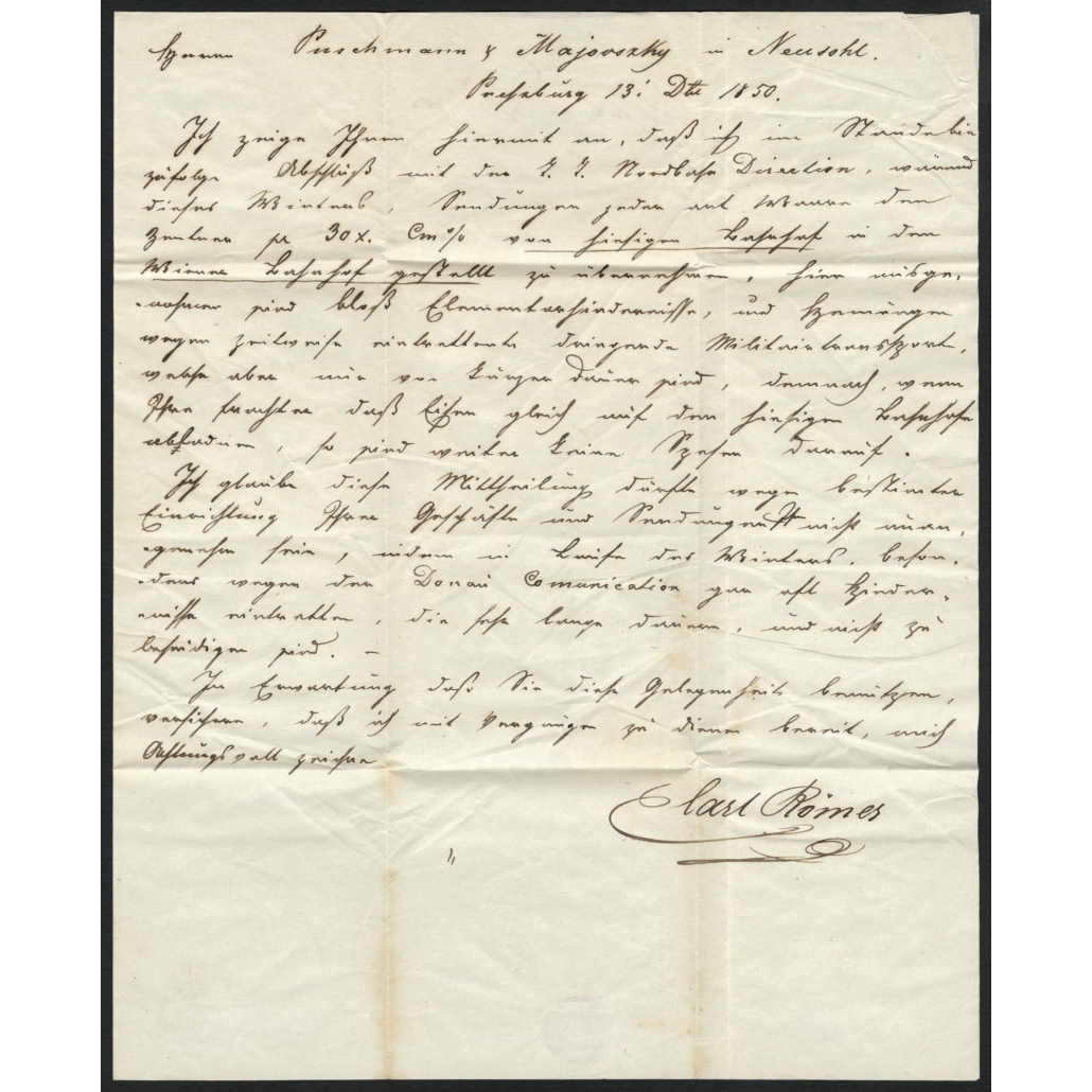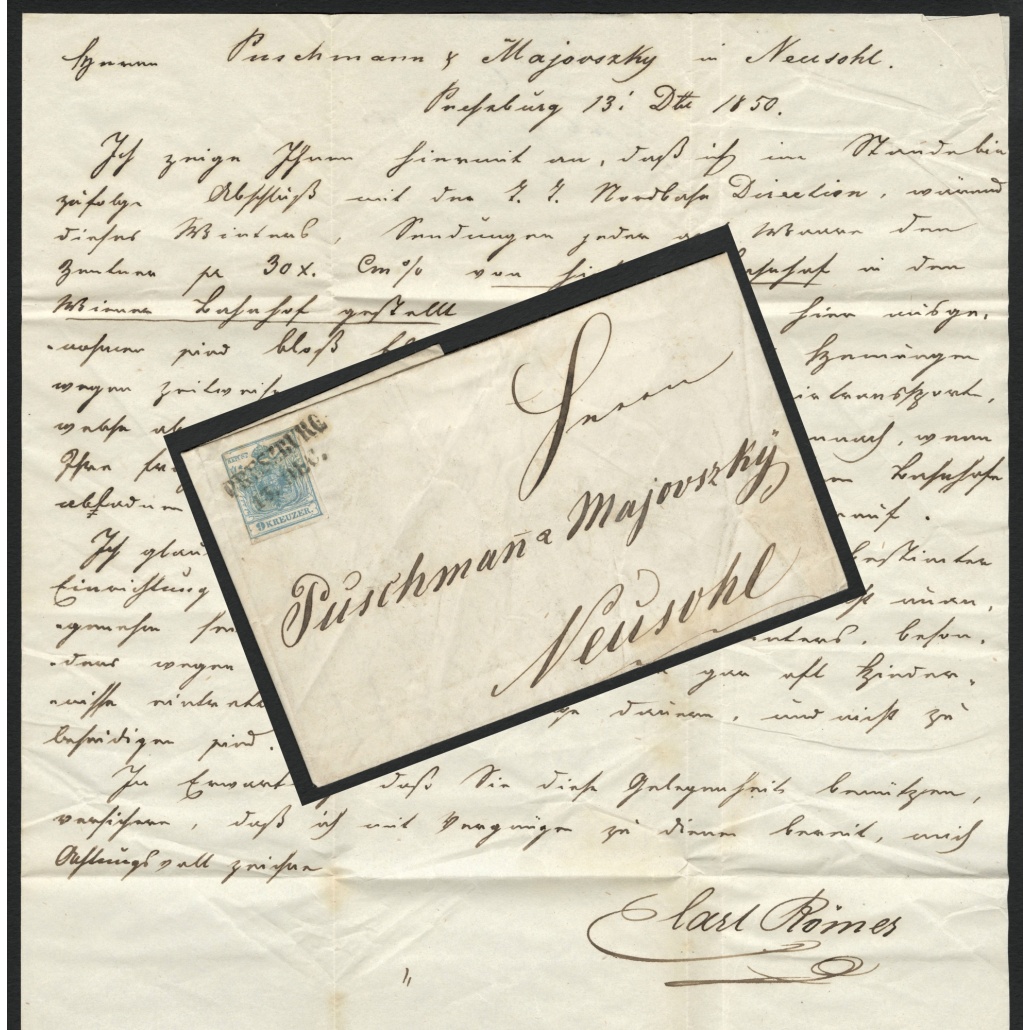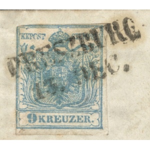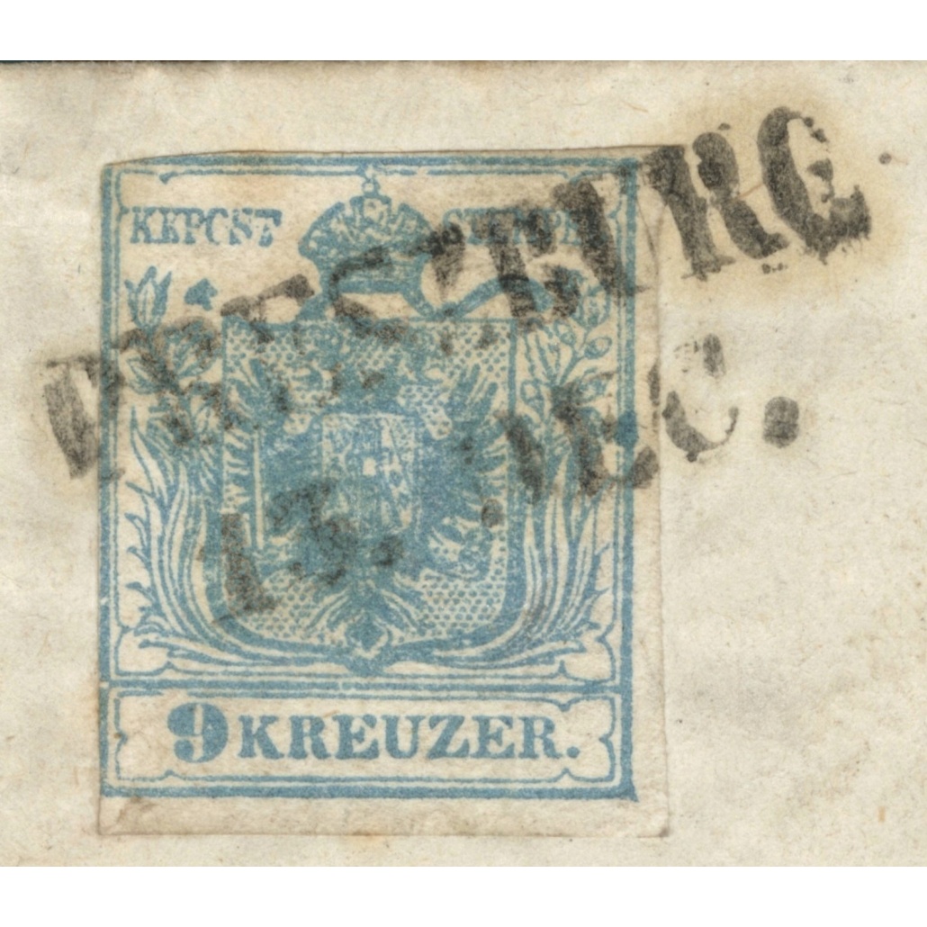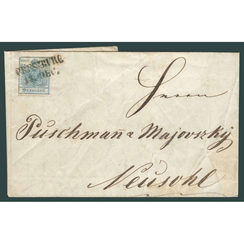 1850 Ausztria – I. tipusú 9kr teljes levélen PRESSBURG bélyegzéssel – Gudlin 250 pont