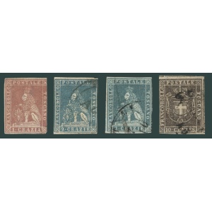 1851 Toszkána a 2 Cr érték mindkét vízjellel + 1860 Ideiglenes Kormány 10c / Stampworld 140 EUR + az 1Cr érték sérült, ezért erre katalógus árat nem számoltunk