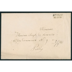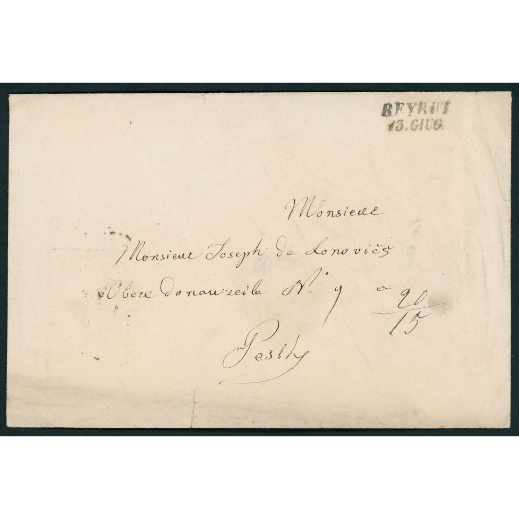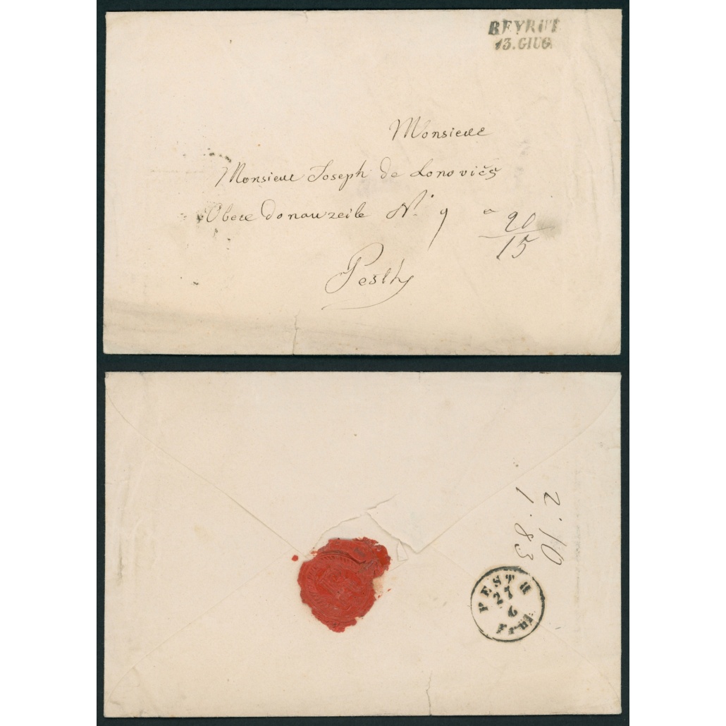 1860 Ausztria Levante – Beirutból Pestre küldött portós levél, ritka korai bejövő levél