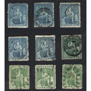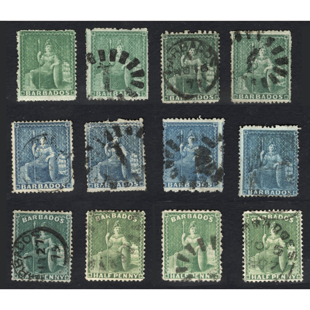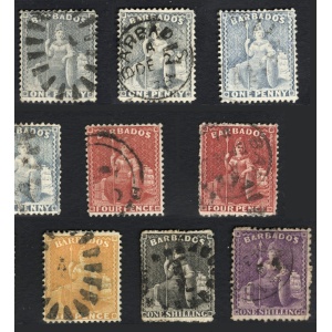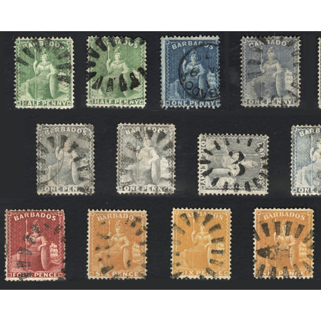 1860 Barbados korai bélyegei egy magyarországi gyűjteményből vízjel és fogazatra átnézetlenül vegyes minőségben csak értékszám szerint sorbarakva
