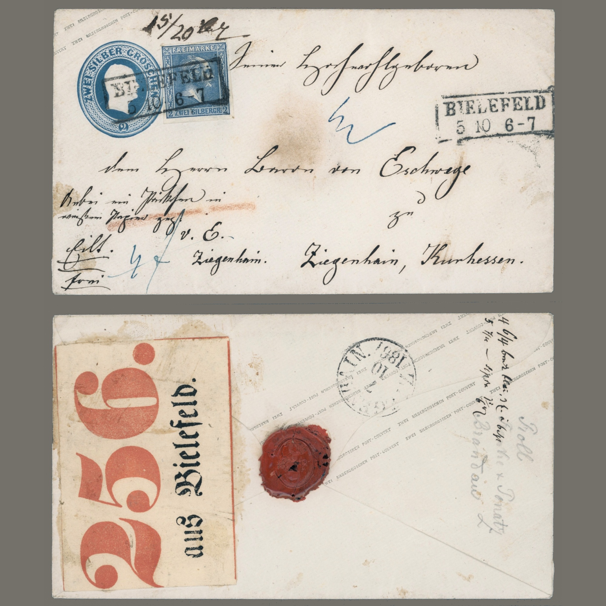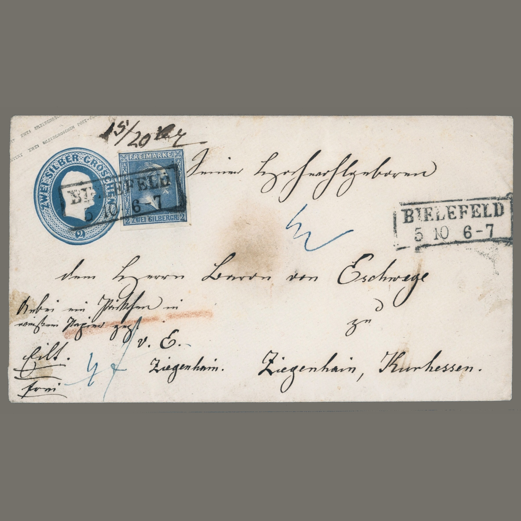 1861 Németország – Poroszország – 2 Sgr díjjegyes boríték 2 Sgr díjkiegészítéssel – dekoratív darab