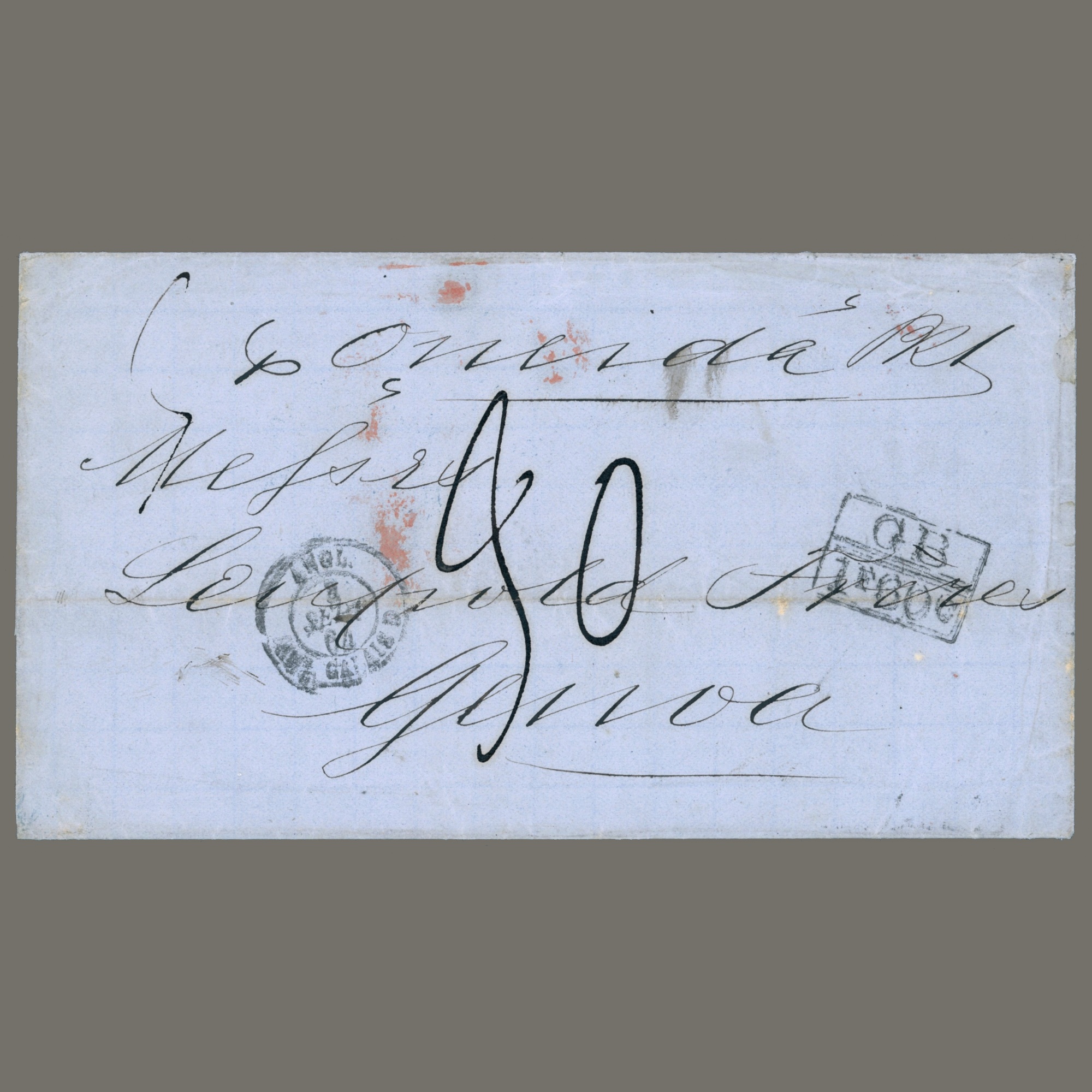 1864 Brazília – Rio de Janeiroból Olaszországba küldött levél, francia és angol átmenő bélyegzésekkel