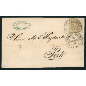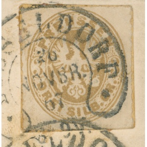 1867 Poroszország – Magyarországra küldött levélen újrafelhasznált 3 sg bélyeg, csalárd bérmentesítés