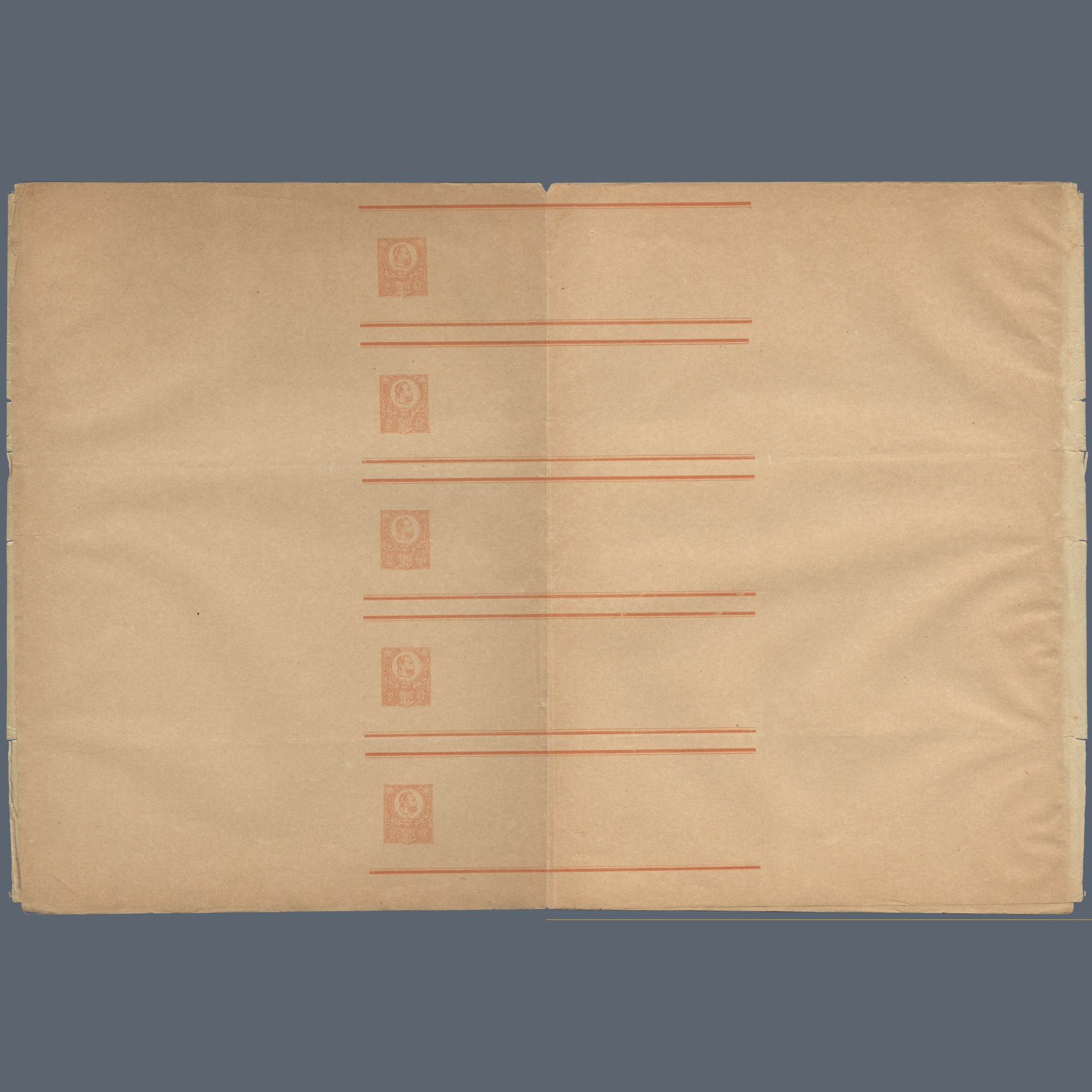 1871 Magyarország – használatlan díjjegyes címszalag félbehajtott komplett ötös ívben, erős hajtásnyommal | Hodobay: 200 EUR