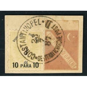 1883 Orient Expressz bélyeg vegyes bérmentesítésben osztrák konzulátis postahivatali Konstantinápoly bélyegzővel | Ferchenbauer: 500 EUR