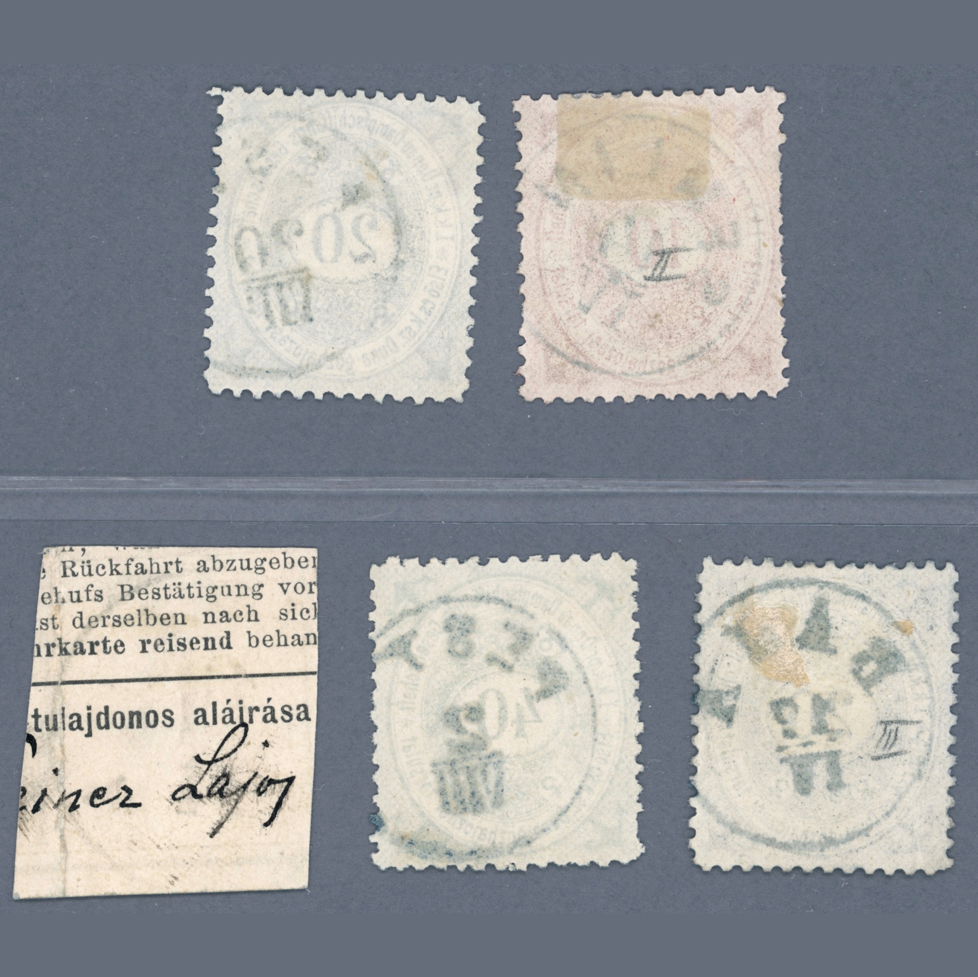 1889 Ausztria – DDSG bélyegek magyar bélyegzésekkel: Pest, Vác, Baja, Semlin
