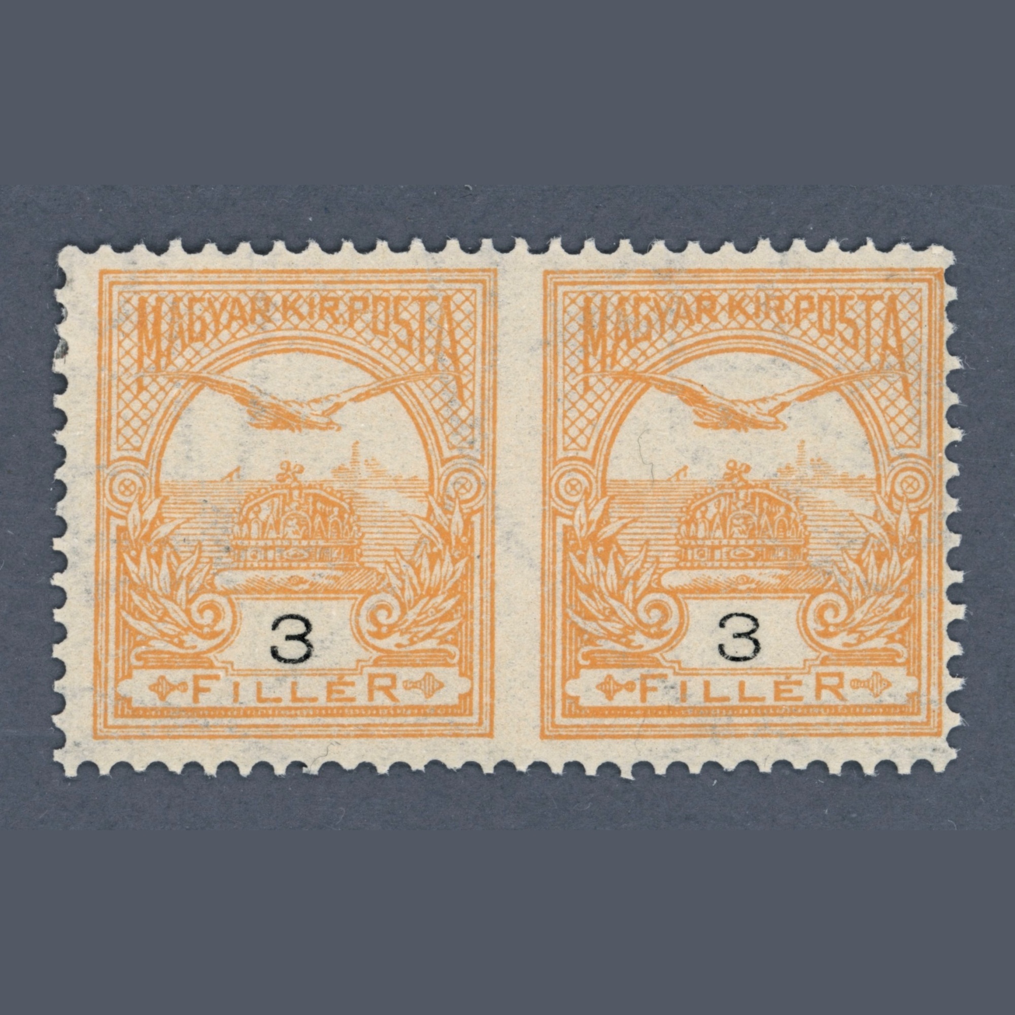 1900 Magyarország – Turul 3 fillér postatiszta középen fogazatlan pár B1 vízjel állással.