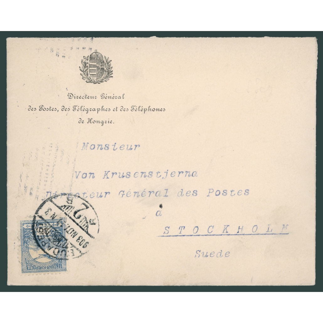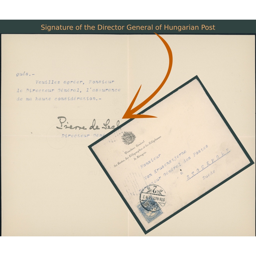 1903 Magyarország – Szalay Péter postaigazgató sk. levele a svéd postaigazgatónak Svédországba küldve