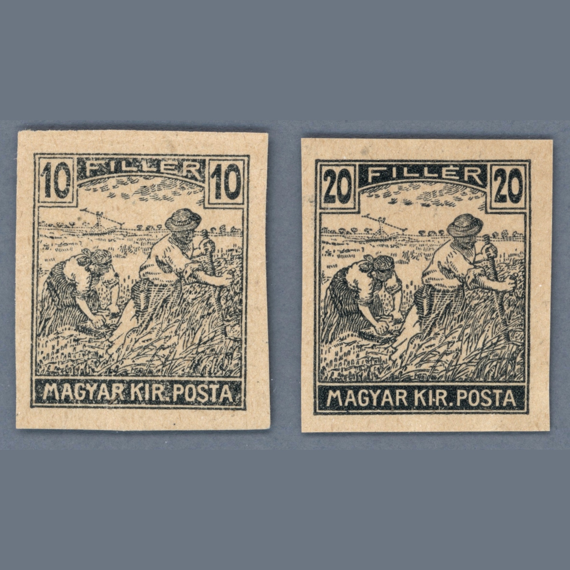 1916 Magyarország – Arató 20+10 fillér próbanyomatok fekete színben