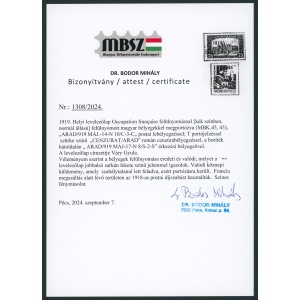 1919 Arad – portózott helyi küldemény, 12 f portóval | Attest: Bo...SC-24-3495SC-24-35061919 Arad – peres ügyben küldött helyi ajánlott cenzúrázott levelezési...