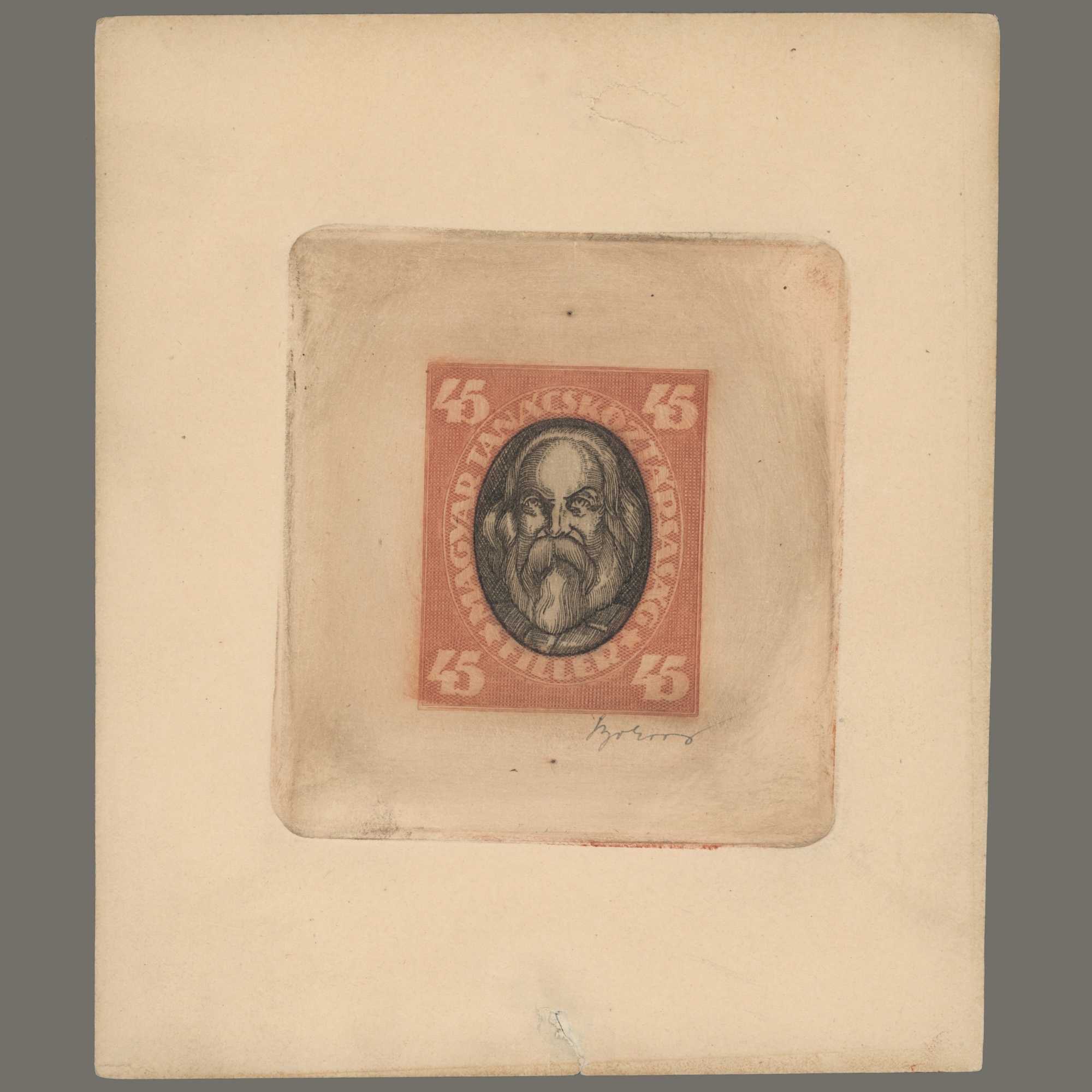 1919 Magyarország – Tanácsköztársaság Marx – a Váradi féle 100 példányban készült bélyegterv, Bakos Ferenc által szignózva