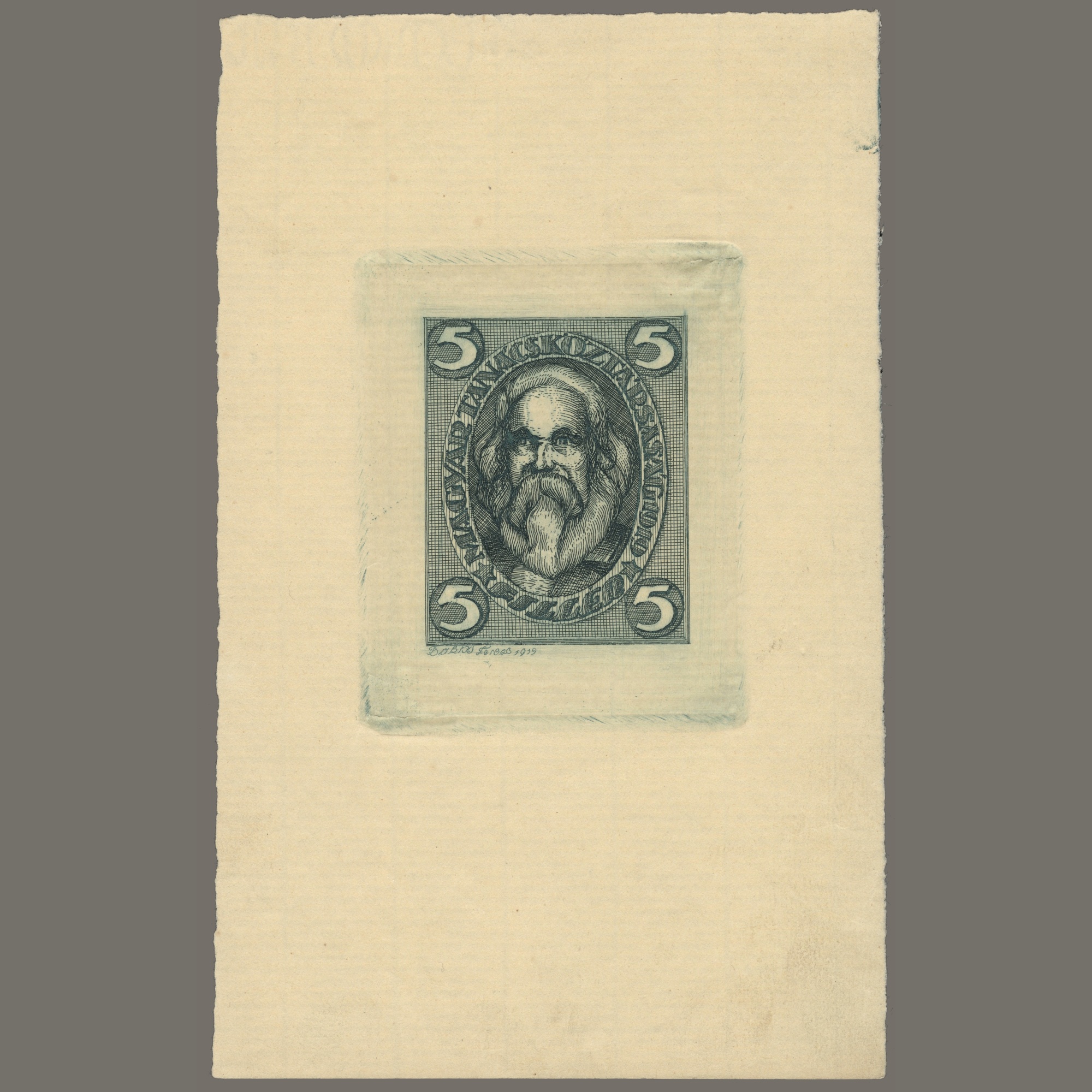 1919 Magyarország / Tanácsköztársaság – Rampacher Essay – Marx – a ritka acélkék egyszínnyomású esszé – merített papíron, mely csak 50 példányban készült