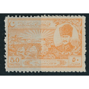 1924 Törökország – Lausanne Béke Egyezmény postatiszta * sor – Az ívszél a bélyeg hátuljára tapadva | Michel: 500 EUR