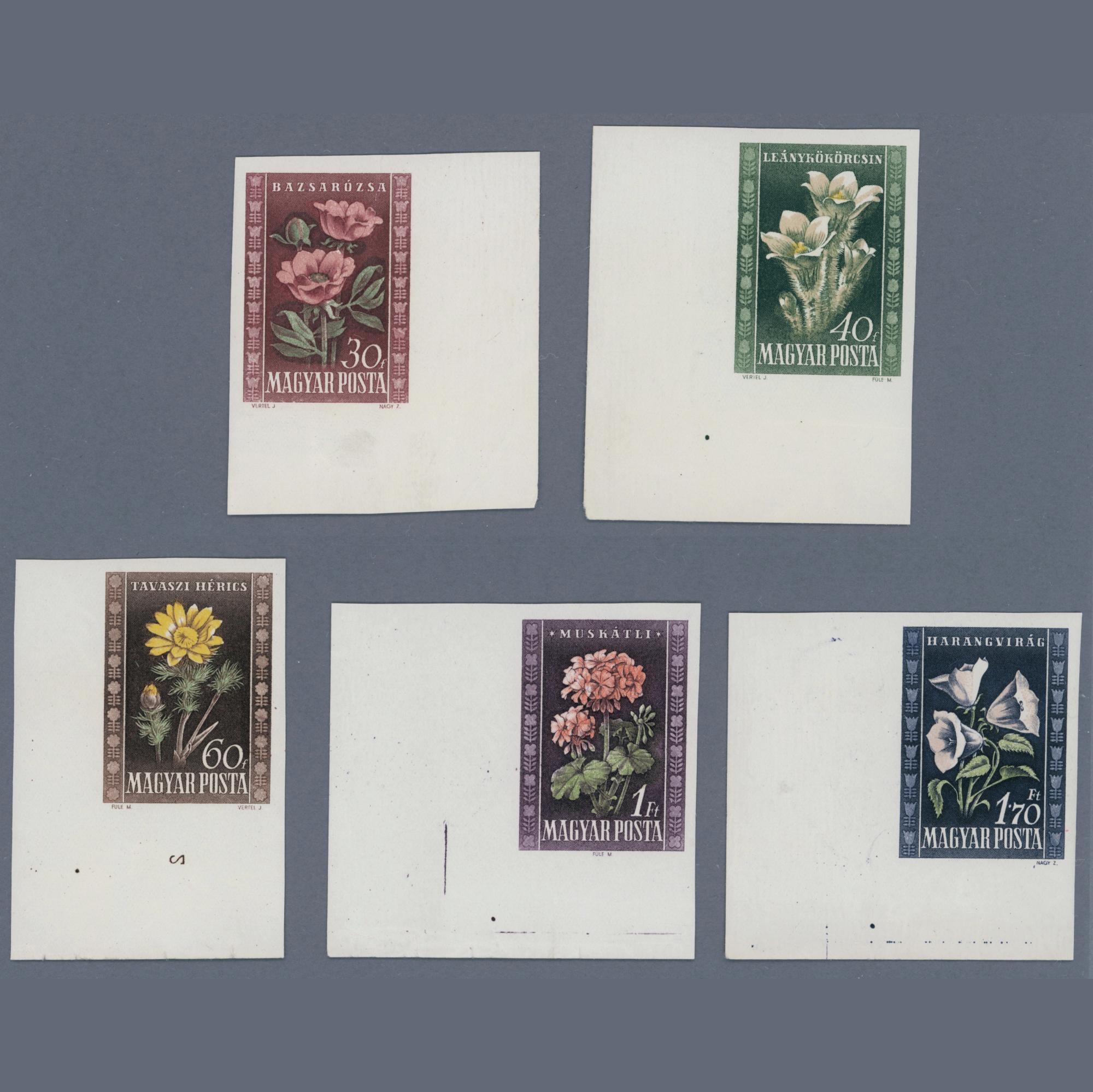 1950 Magyarország – Virág ívsarki postatiszta vágott sor | Mi: 1112-1116 | Phu: 1168-1172 / 62.5 EUR