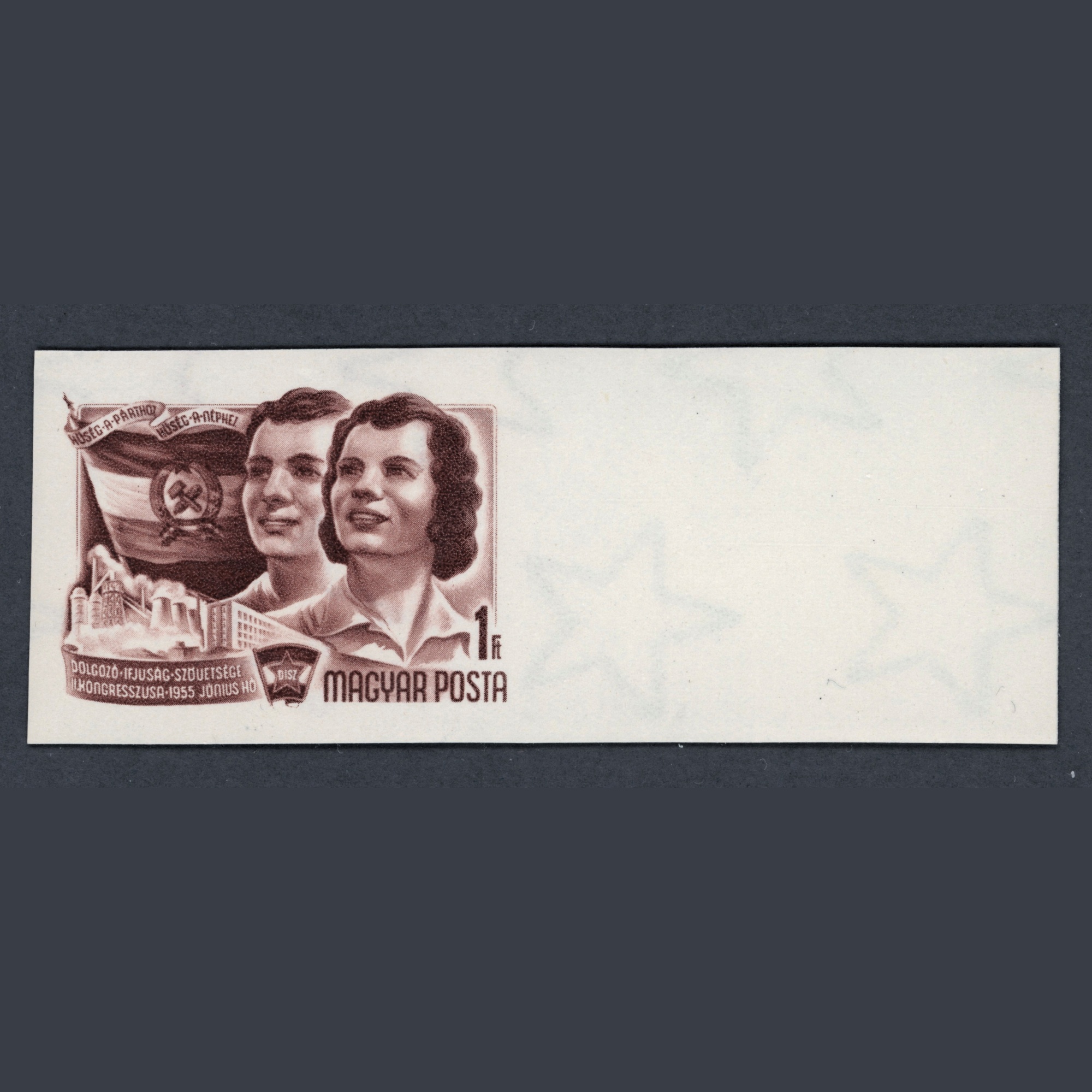 1955 Magyarország – DISZ vágott bélyeg hatalmas ívszéllel postatiszta ** Mi: 1424 | PHu: 1484 / 12.5 EUR